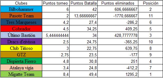 Tal y como estaba la cosa tenía un 17-3 y pensé que ya era suficiente para ganar el torneo y decidimos dejarlo aquí. A la postre la mesa 1 terminó de la misma manera que la mía pero Micky con más puntos de victoria con lo que no gané el torneo.